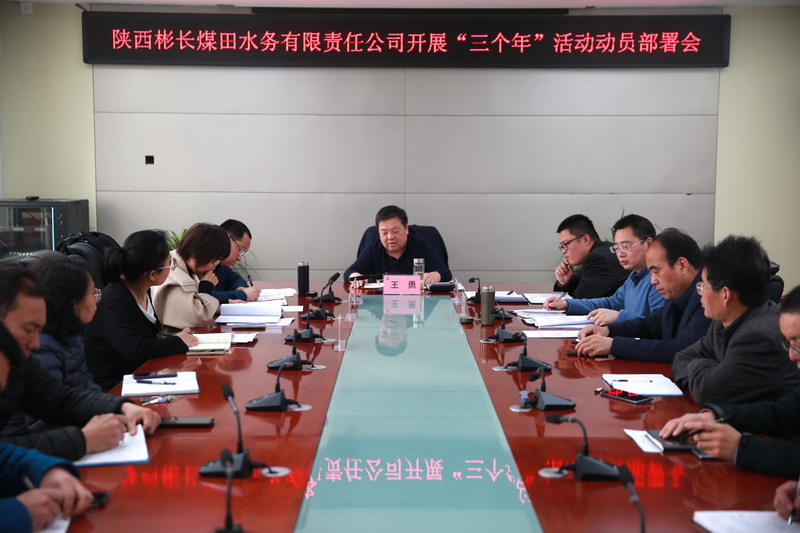 按照市委市政府、市水利局、市國資委關(guān)于開(kāi)展“高質(zhì)量項目推進(jìn)年、營(yíng)商環(huán)境突破年、干部作風(fēng)能力提升年”三個(gè)年活動(dòng)的統一部署。4月3日上午,彬長(cháng)水務(wù)公司召開(kāi)“三個(gè)年”活動(dòng)動(dòng)員部署會(huì ),公司中層及以上領(lǐng)導干部參加會(huì )議,會(huì )議由黨總支書(shū)記、董事長(cháng)、總經(jīng)理王勇主持。